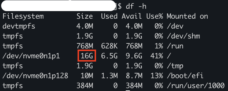 root 파티션이 정상적으로 16GB까지 확장되었다.